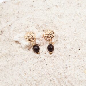 Pierres semi-précieuses montées sur dormeuses, créoles, ou clous en plaqué Or & Argent.